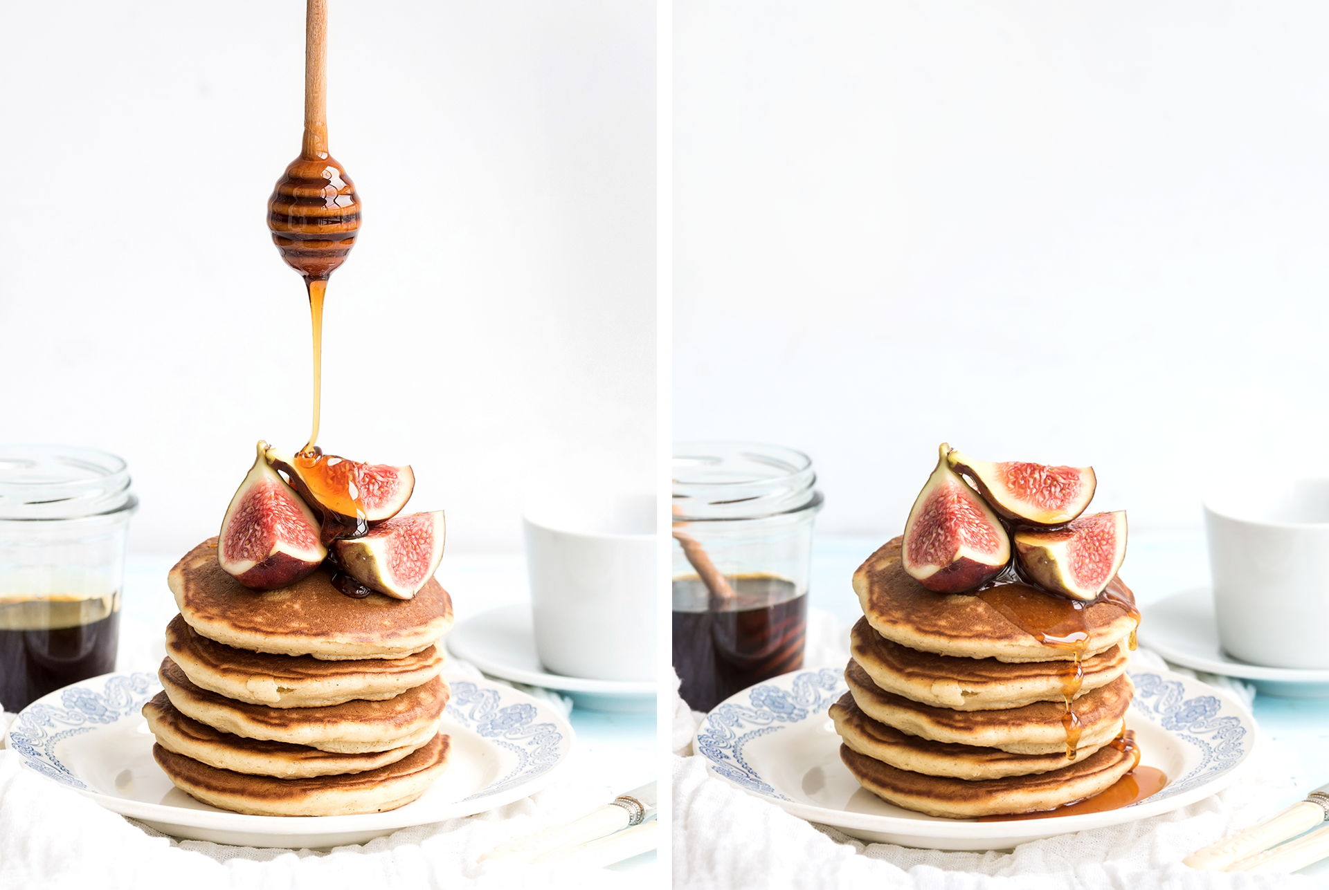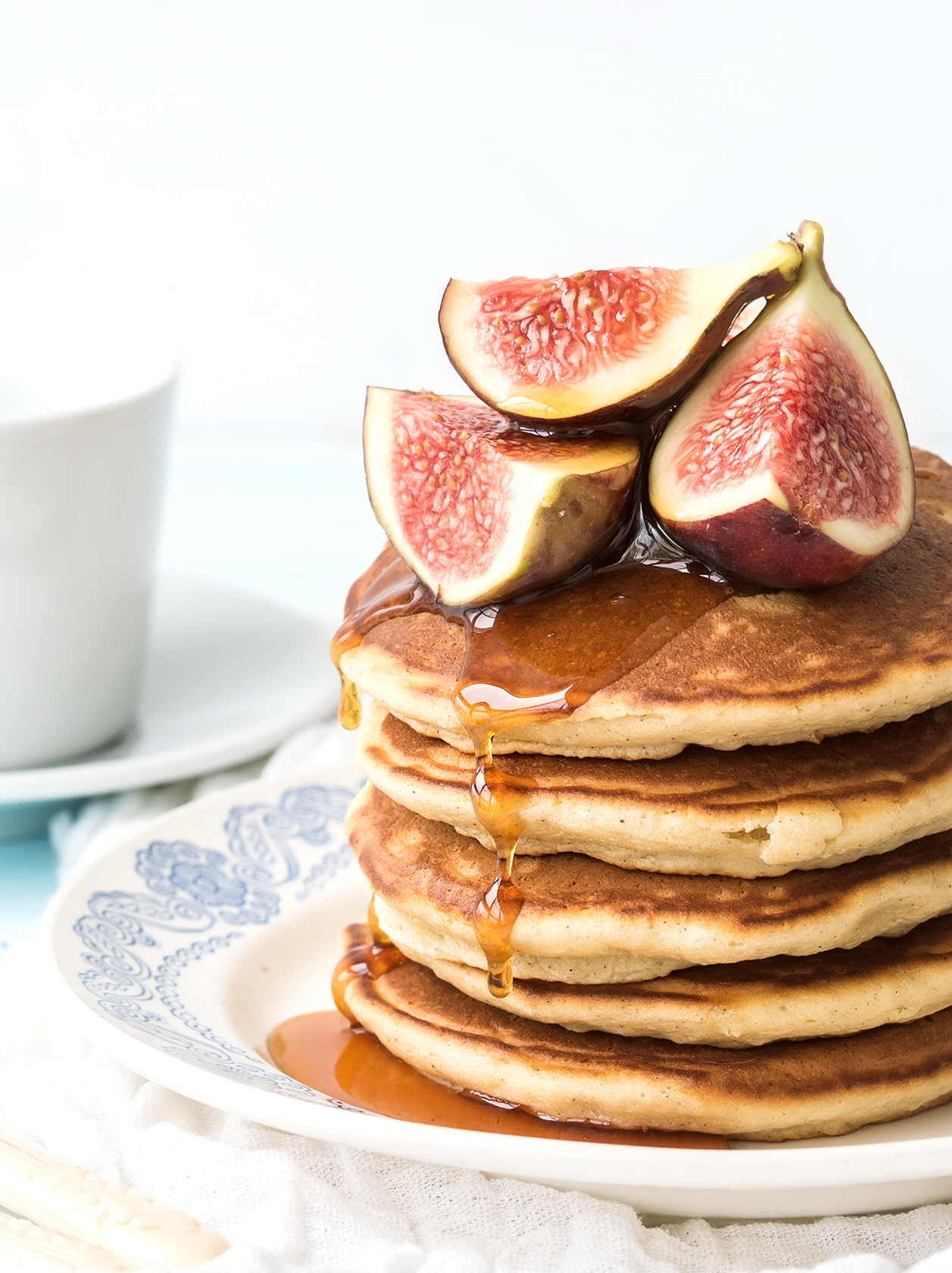 Fluffy pancakes are every cook's weekend dream. For breakfast or brunch, you'll have this batter ready in no time. There are so many things that you can use for garnish, but my family loves them the traditional way - with just maple syrup and fruits. We call the big stack the pancake cake and try to make it at least once each month.